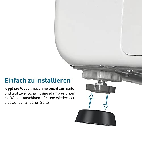 - Easy to install—-No tools or adhesives needed. Simply pop the four rubber dampers under the corners of any washing machine, dishwasher, tumble drier or other noisy appliance,you will never again have to deal with loud noises and vibrations. Please Keep the ground dry to prevent slipping when using these pads