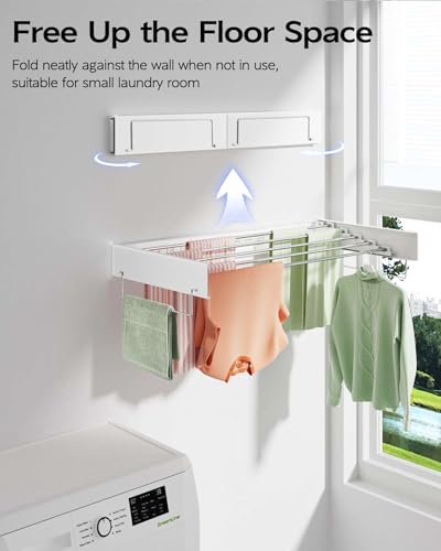 • Floor Space Saver: Very easy to extend and retract. Smooth and quiet when expanding or pushing it in. This laundry rack folds neatly against the wall when not in use, freeing up the floor space and you will forget it is there. Air dry in a small space and keep your floor space uncluttered and unobstructed.