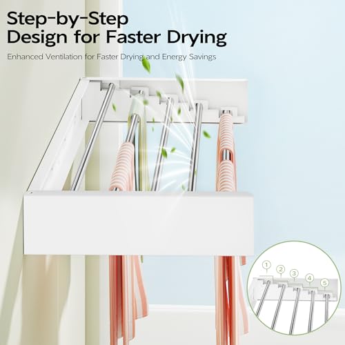 - Floor Space Saver: Very easy to extend and retract. Smooth and quiet when expanding or pushing it in. This laundry rack folds neatly against the wall when not in use, freeing up the floor space and you will forget it is there. Air dry in a small space and keep your floor space uncluttered and unobstructed.