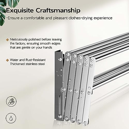 - Exquisite Craftsmanship: Our folding drying racks for laundry are made from premium stainless steel to prevent rusting. They undergo careful pre-factory polishing, ensuring a smooth and safe surface without sharp edges. Equipped with detailed installation instructions, making it easy to complete the installation.