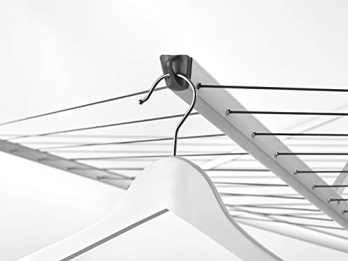 - LARGE 40M DRYING SPACE – Holds up to 3 washing loads and includes 4 integrated hooks on the end of each arm and 4 additional hooks to clip onto each arm to hang clothes hangers for extra drying space