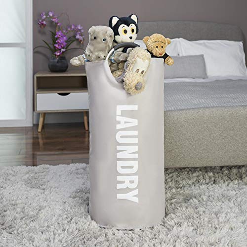 Vinsani® Laundry Basket, Collapsible Washing Baskets Bin Bag Sorter For Bedroom Bathroom – Strong Hard Wearing Waterproof Fabric with Round Aluminium Carrying Handle, Grey