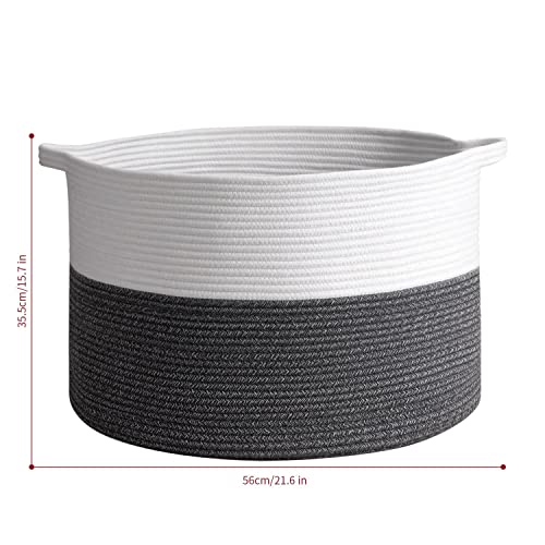 Vinsani Laundry Basket Natural Cotton Hand-Woven Rope Hamper Two Tone Scandinavian Home Décor Minimalist Aesthetic Storage For Clothes Baby Toys Nursery Bathroom and Bedroom Use – White & Dark Grey