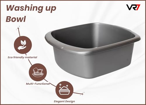 VR7 Plastic Washing Up Bowl Rectangular Grey Washing Bowl for Sink Kitchen Basin Mixing Dish