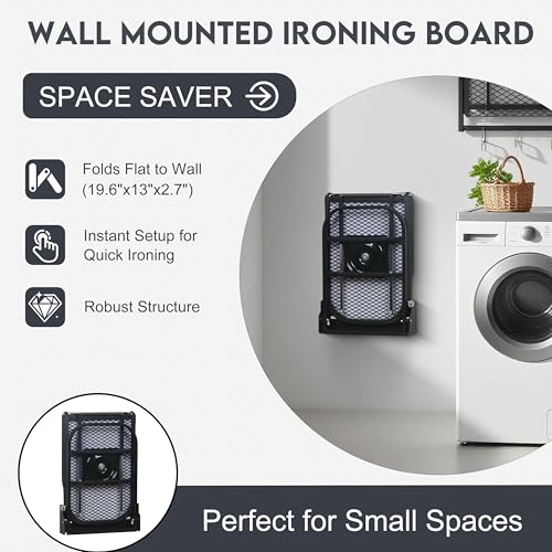 - 【Instant, Hassle-Free Ironing】 Say goodbye to bulky, traditional ironing boards. This wall-mounted unit flips down in seconds, creating a ready-to-use station for quick touch-ups or full ironing sessions. Fold it away just as easily when you're done.