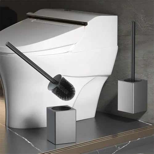 Wall-Mounted Toilet Brush Set, Square Aluminum Alloy Holder, Stylish Bathroom Accessories, Modern Lavatory Cleaning Tool, & Space-Saving Design