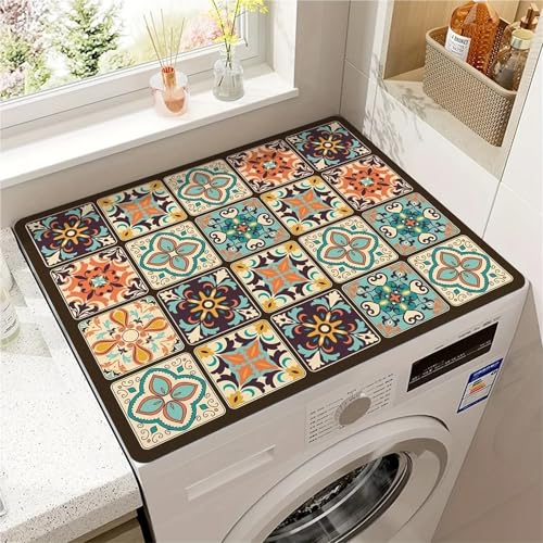 PPQIRU Washer And Dryer Cover For Top 50X60cm Vintage Checkered Printed Washing Machine Cover Pad, Quick-Dry Absorbent Protective Top Mat For Washer And Dryer For Laundry(Blue Plaid)