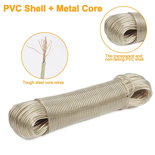 - Material: Made of high quality steel core and transparent PVC coated, The steel core leash has a rust-proof PVC coating to avoid stains on clothes. The long life of this line protects the clothesline from all weather conditions and ensures that the colour does not fade even after prolonged use.