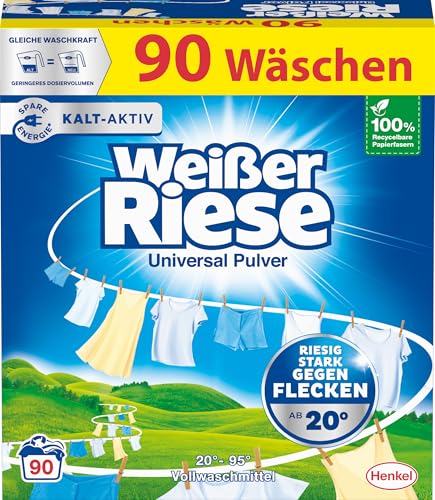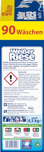 Weißer Riese Universal Powder (90 Washes), Full Detergent Works Huge Strong Against Stains, Cold Active from 20°C, Rich Washing Powder, Ideal for Families with Children