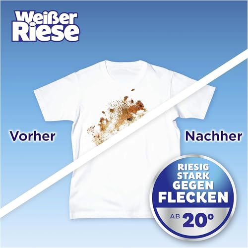- Cold-active – With the improved washing power, the Weißer Riese universal detergent ensures radiantly clean laundry even at low temperatures from 20 °C