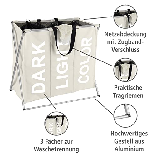 WENKO 3440113100 Laundry collector Trio Beige – 3 laundry compartments, capacity 130 L, Polyester, 63 x 57 x 38 cm