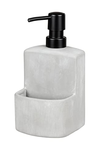 WENKO Festival washing-up liquid dispenser, refillable soap dispenser made of robust concrete in grey, compartment for the washing-up sponge perfect for the kitchen, 380 ml, 10 x 18 x 10 cm, concrete