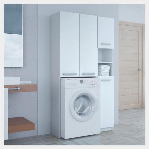 WHATSIZE ENTERPRISE – Marpol – White Wide Washing Machine Storage Surround – Wooden Laundry Cupboard with Shelves – Organise Essentials & Detergents- Furniture to Complement Modern Décor