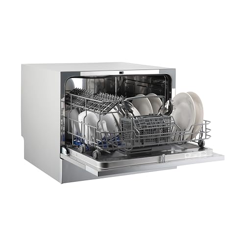 - 6 Place Settings – This tabletop dishwasher has 6 place settings and will fit dinner plates up to 10.5" making it the perfect size for small families, couples or single households.