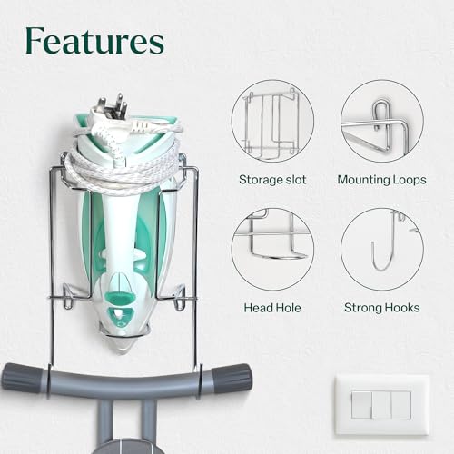 - Standard Size & Dimensions: Iron holder Length is 27 cm , Width is 17 cm & Height is 8.6 cm ;This iron storage wall mounted has sturdy and reliable construction; holds any standard-sized iron and ironing board