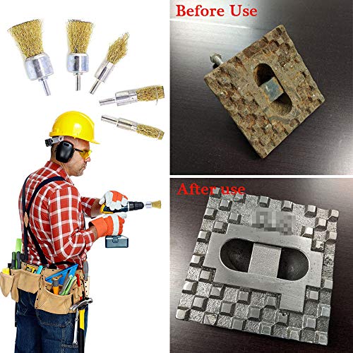 Wire Brushes Material:Metallic Wire Brush Drill Bit Set is made from high quality brass plated steel wires for effective surface cleaning and preparation.