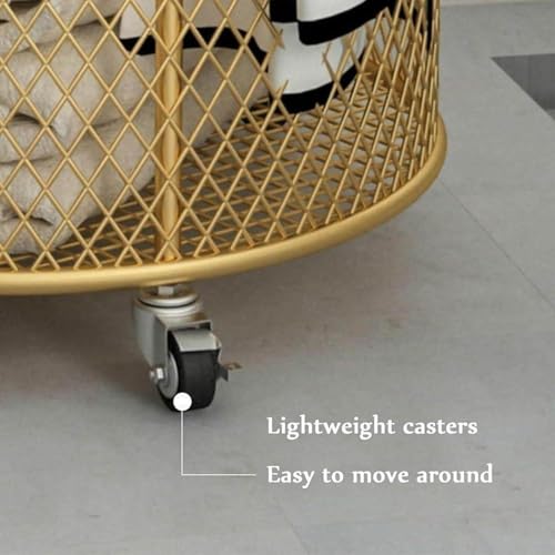 Wire Laundry Basket with Wheels, Metal Rolling Laundry Hamper for Bedroom Bathroom, Dirty Clothes Towels Storage Bin Box,Gold-A