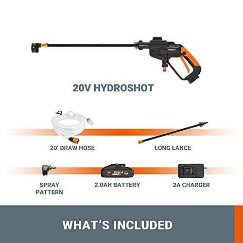 - First Truly Mobile Pressure Cleaner – The Worx Hydroshot 20V-24 bar cordless pressure cleaner is the first of its kind, leading the way with its unique mobile design. It's been followed by many clones, but remains the best in its class. Clean anywhere there's water, be it a bucket, lake or pool. Its cordless feature makes it incredibly convenient for all your cleaning needs, from bikes to patio furniture.