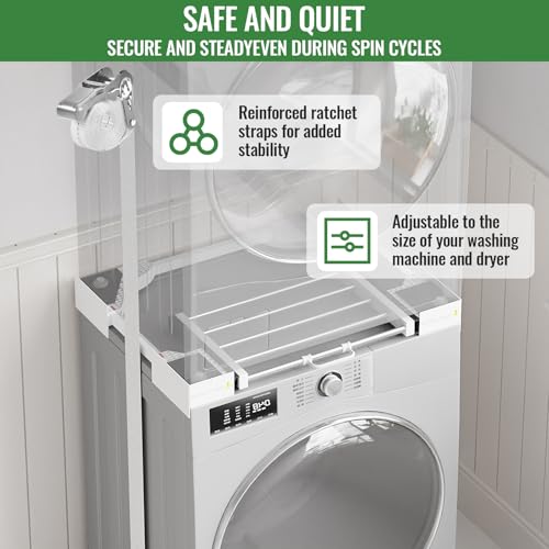 WUDLEP 29 inch Stacking Kit for Washer and Dryer, Universal Washer and Dryer Stacking Kit with Pull Out Drying Rack, Adjustable 29"/28"/27"/26"/25"/24" Stacking Kit with Ratchet Strap