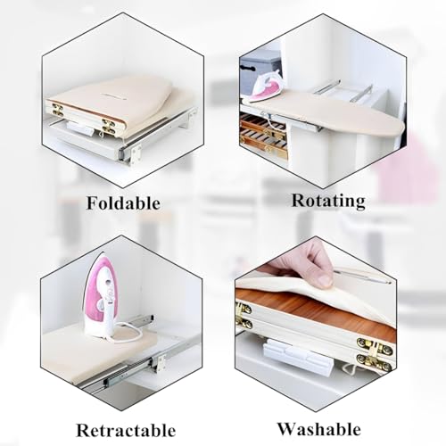 - 【Space-Saving Solution】:Designed to tuck neatly away, this pull-out ironing board can be easily folded into a wardrobe or cabinet when not in use. Installation is simple, and it fits most standard base cabinets, saving valuable space in your home. The high-quality slide rails ensure smooth operation with minimal effort.