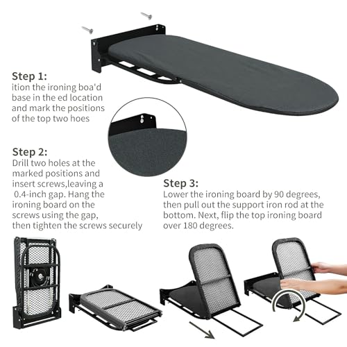 WUDLEP Wall Mounted Ironing Board, Folding Ironing Board, 92×31cm, Rotatable 180° with Heat Resistant Cover, for Cabinet Living Room Laundry Room
