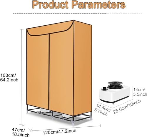 - *High Output Dryer with Timer: Clothes Dryer uses high output drying machine, which can dry clothes faster than most of other portable dryers in the market. 30-180min Timer function allows you to leaver the dryer running without worry waste energy,Equipped with a high-density waterproof cloth cover, it can be sealed and dust-proof to hang and store clothes. No ironing is required to dry clothes. It can be used for clothes of various materials.