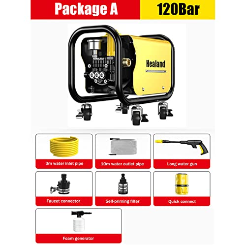 XINRISHENG High Pressure Washer, 220V Portable 120bar Car Washing Machine Car Wash Water Gun Pump Foam Generator Cleaner,A