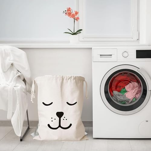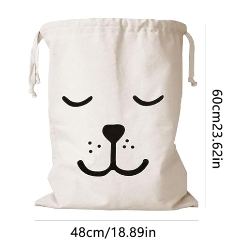XINSUO® 2 pcs Canvas Drawstring Laundry Bags Washable,60 x 48 cm Canvas Laundry Bag with Drawstring,Large capacity for multiple garments,Machine washable(Smiling Bear)