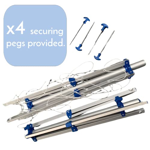 - SUPPLIED WITH 4 SECURING PEGS – Simply hammer the pegs provided into soft ground to lock your washing line in place.