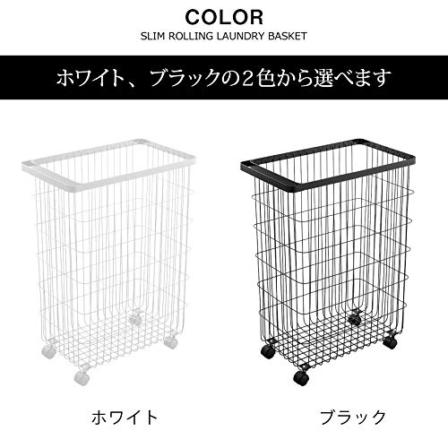 Yamazaki 4776 TOWER Laundry Basket With Wheels, white, Steel/Nylon, Minimalist, 28 x 46.5 x 61 cm