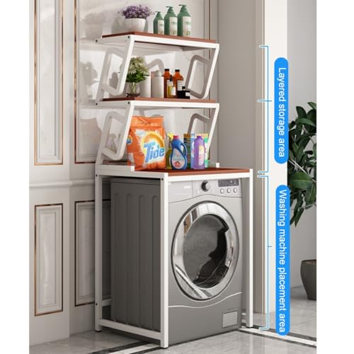 - Maximize your laundry space: The Washing Machine Storage Rack offers a spacious design with multiple tiers. The bottom tier provides ample room to store your washing machine, while the top shelf is perf ect for holding daily toiletries and other essentials. This versatile Over The Washer and Dryer Storage Shelf is id eal for any laundry room, keeping your items organized and easily accessible.
