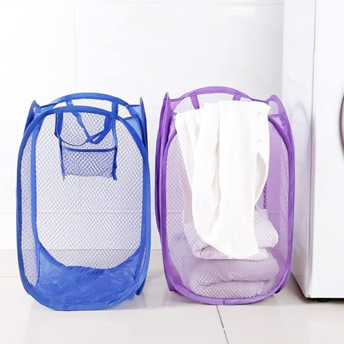 YIAGUN Laundry Baskets Pop Up Mesh Washing Bag, Foldable Laundry Hamper Bin Bag with Durable Handles & Side Pocket(1 PCS)