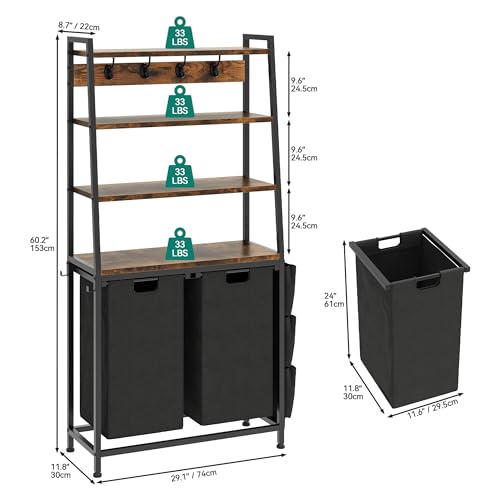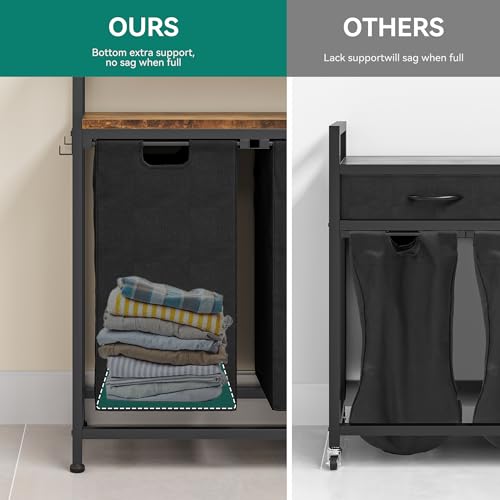 - Pull-out and Removable Laundry Bag: The 2 pull-out Oxford fabric laundry bags allow for separate storage of different laundry; They can be easily removed from the shelf so that you can easily take your clothes to anywhere in your home