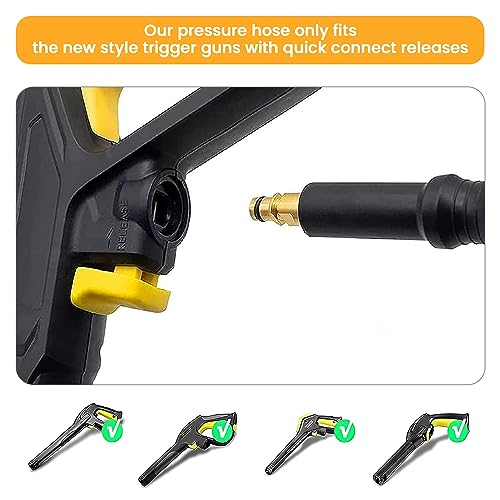 - [MULTI-PURPOSE] Flexible and durable pressure washers hose with protection against folds, length of 15 meters for a variety of uses, Directly connects to the pressure washing gun, more suitable for home use.
