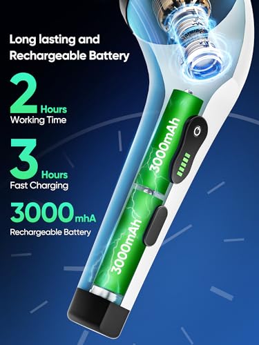 - 【Fast Charging and Long Working Time】Using a 7.4V DC high-voltage battery and USB Type-C fast charging technology, electric household brush only takes 2 hours to be fully charged. The power scrubber vacuum cleaner has a 3000mAh large-capacity rechargeable battery, which can work continuously for 90 minutes. The cordless design of the electric cleaning brush allows you to use it wherever you need it!