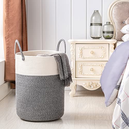 YOUDENOVA Cotton Rope Basket Large Blanket Basket Woven Storage Basket Toy Storage Organiser Nursery Decor Laundry Hamper with Handle 58L (38cm(D) x50cm(H), Y Dark Grey)