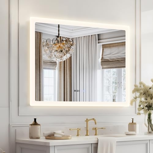 • 【Anti-fog & Waterproof】Our bathroom mirror with demister pad heats up to prevent fogging and keep the mirror clear. With an IP44 waterproof rating, this mirror is perfect for safe lighting in wet bathroom environments.