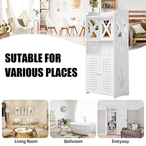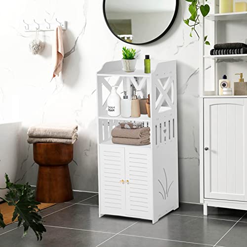 Youyijia 3 Tier Bathroom Storage Cabinet Floor Standing Display Cabinet Home Storage Furniture Organizer Unit for Office Living Room Kitchen Entryway White (3 Tier)