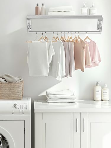 Youyijia Foldable Clothes Airer Wall Mounted Clothes Airer Retractable Clothes Drying Rack for Indoor and Outdoor Use