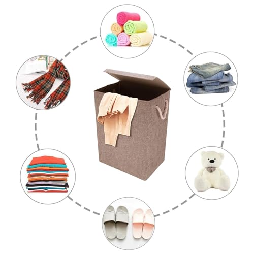 • [LID DESIGN]: The tall laundry basket has a lid design to hide smelly clothes while keeping your dirty clothes out of sight. Quickly folds for storage when not in use, saving space and easy to clean.