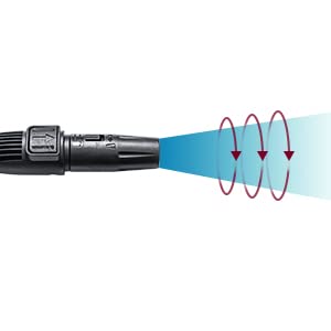 - Two Nozzle Streams: Jet spray and fan spray for faster dirt removal, saving time, energy, and water. Turbo rotating design increases cleaning efficiency.