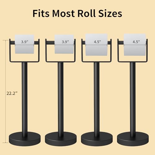YUMORE free standing toilet roll holder features a super stable base weighing 1600g, twice as heavy as similar options. You can pull off sheets of toilet paper without worrying about it moving or tipping. The base is with anti-slip paddings to prevent the toilet paper holder from moving out of place, keep the floor free from scratches