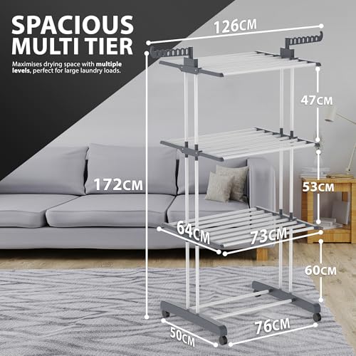 - SPACIOUS 4-TIER DRYING RACK – Designed for maximum drying capacity, this large clothes airer features multiple tiers to dry everything from laundry and towels to bedding and delicates, making it an essential home addition.