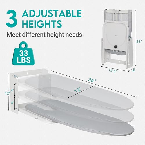 - Design for Long-term use: Made with a high-quality metal frame, the wall ironing board can support up to 33 lbs, ensuring stability and durability during daily use. The heat-resistant cotton pad cover and metal top provide better heat dissipation, withstanding higher temperatures