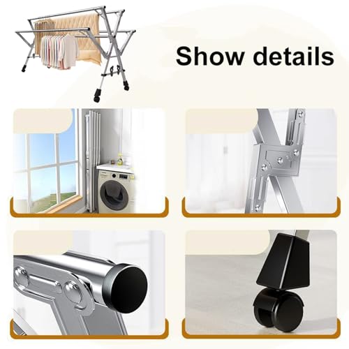 - Foldable Design: Constructed with a sturdy stainless steel frame and fixed hooks, this portable laundry drying rack allows for organized and efficient drying. It is user-friendly and hassle-free.