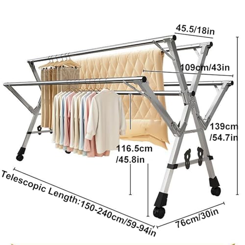 ZOLPINL Heavy Duty Stainless Steel Clothes Drying Rack, 200Cm, Folding Outdoor Indoor Retractable Laundry Drying Rack, Portable Design