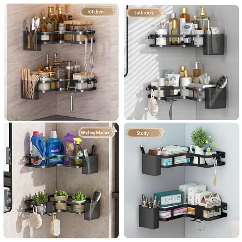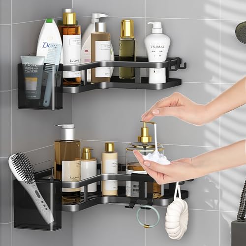 ZVZM Corner Shower Caddy, 2 Pack Home Essentials Bathroom Organiser Accessory, Shower Shelf Storage Corner Shelves Rack for Black Bathroom Accessories or Kitchen